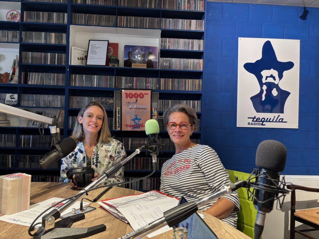 Sharon Derammelaere, samen met Bart Somers, is Digistroom-coördinator. Zij was te gast bij Peter, Eva en Laure, samen met Yannic De Meyer (kopfoto). Vanaf midden mei vorige maand vind je in een honderdtal horecazaken in de ruime regio rond Deinze heel opvallende bierkaartjes over online daten. Digistroom wil via deze campagne ook mensen die digitaal minder vaardig zijn veilig online op zoek laten gaan naar een partner. Het gaat bijna in één klik. Je moet eerst naar de website gaan “www.digistroom.be” , waar je dan gratis digitale les rond veilig online daten kan volgen.